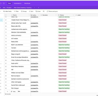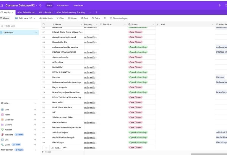 I worked as part of the Customer Service team at Rincoe Indonesia. My daily routine consists of managing client databases using Airtable, handling customer complaints or claims through our online form, and communicating email to answer any inquiries.